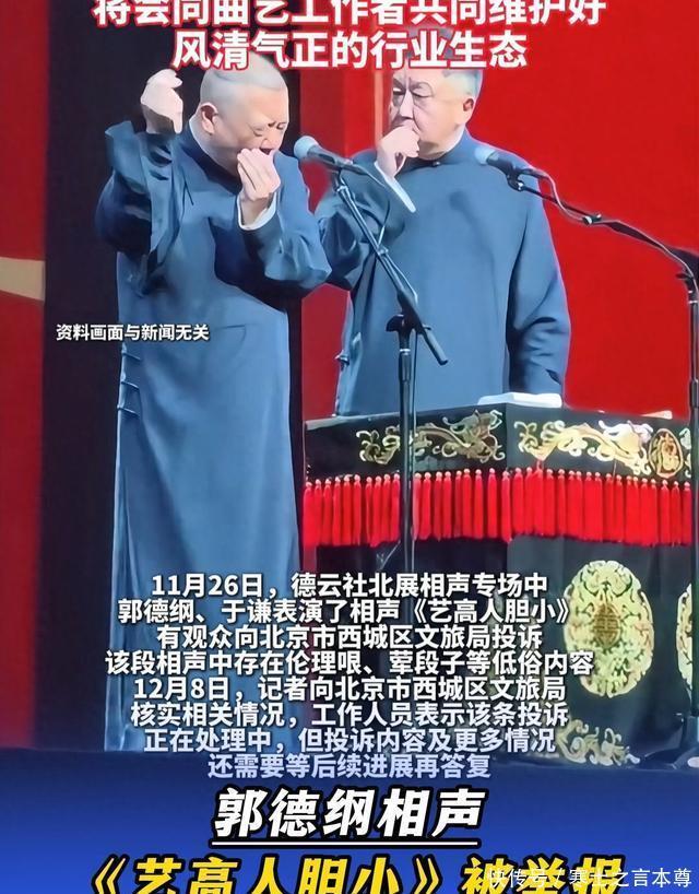 这场风波的源头,要追溯到11月26日德云社在北京北展剧场举办的专场演出。当晚,郭德纲与于谦合作表演的经典相声《艺高人胆小》,被一位网友完整记录并举报至北京12345平台。12月2日的投诉内容直指该作品“存在大量伦理哏、荤段子、骂黑粉,造谣抹黑国营院团”,用词尖锐,诉求明确。